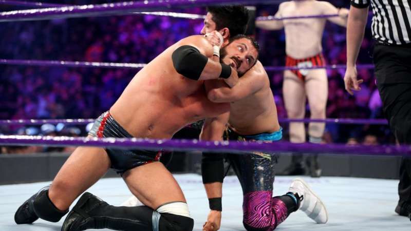 Aries finally tagged in Gallagher, who began asserting his dominance on TJP. Aries jumped onto Neville outside, and inside the ring, Gallagher headbutted TJP and looked to get the running dropkick. Neville distracted him and Aries hit Neville with the Discus fivearm outside. TJP took advantage of the commotion and struck Gallagher before hitting the detonation kick for the win.